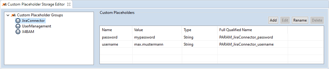 Beachten Sie, dass Sie für die Nutzung des Adapters zunächst eine Parametergruppe mit den entsprechenden Jira-Zugangsdaten anlegen müssen. Diese können Sie entweder manuell in der Global Parameter Configuration oder über einen Integration Process mithilfe des Adapter Global Parameter Management.