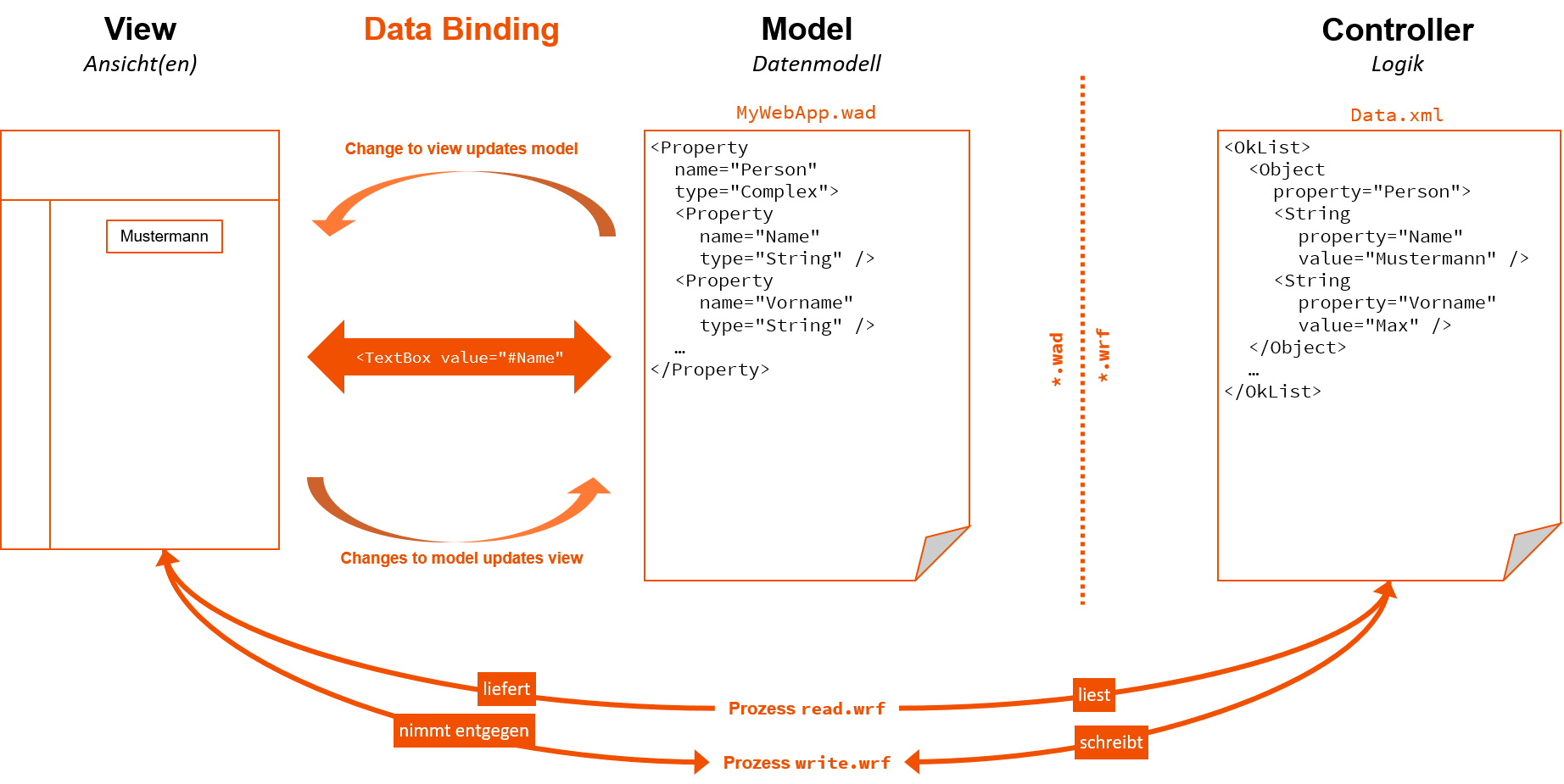 Für das Data Binding werden die name-Attribute der Elemente verwendet.