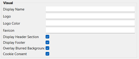 Favicon: In diesem Feld können Sie den Pfad zur Grafikdatei (.gif, .ico, .png oder .svg) angeben, die als Favicon der Web App verwendet wird. Die Datei muss im Ordner Display Header Section: Mit diesem Kontrollkästchen legen Sie fest, ob die Kopfzeile der Web App angezeigt wird. In der Standardeinstellung ist das Kontrollkästchen aktiviert. Display Footer: Mit diesem Kontrollkästchen legen Sie fest, ob die Fußzeile der Web App angezeigt wird. In der Standardeinstellung ist das Kontrollkästchen aktiviert. Hinweis: Falls in der angezeigten Component Actions vorhanden sind, wird die Fußzeile in der mobilen Ansicht unabhängig davon angezeigt, ob das Kontrollkästchen aktiviert oder deaktiviert ist. Overlay Blurred Background: Mit diesem Kontrollkästchen legen Sie fest, ob der Hintergrund bei der Anzeige von Overlay-Strukturelementen verschwommen oder klar dargestellt werden soll. In der Standardeinstellung ist das Kontrollkästchen aktiviert. Das heißt, dass bei Overlays der Teil der Web App, der noch im Hintergrund zu sehen ist, verschwommen dargestellt wird. Cookie Consent: Mit diesem Kontrollkästchen legen Sie fest, ob das Pop-up mit der Cookie-Zustimmung angezeigt wird. In der Standardeinstellung ist das Kontrollkästchen aktiviert. |