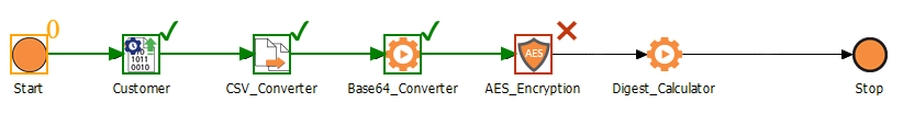Wenn Sie einen Eintrag in der Fehlersicht auswählen, wird die Prozessdetailsicht für die zugehörige Prozessinstanz geöffnet. Hier können Sie auf der Karte Prozessbild auf einen Blick sehen, in welchem Prozessschritt der Fehler aufgetreten ist. Fehlerhafte Prozessschritte sind durch ein rotes Kästchen gekennzeichnet.