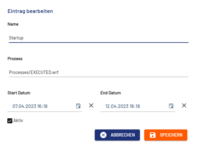 Die Werte in den Feldern Name und Prozess können nicht zur Laufzeit verändert werden.