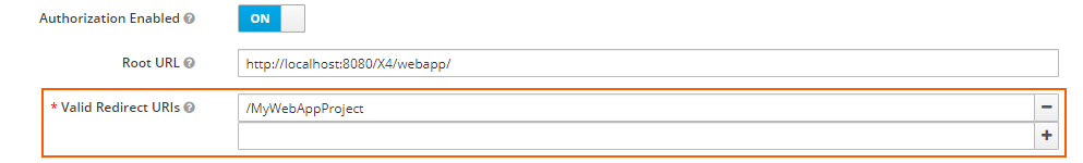 Die X4 BPMS unterstützt verschiedene Autorisierungsabläufe und das Single Sign-on-Authentifizierungsverfahren. Um die Autorisierungsabläufe für X4 Web Apps anzuwenden, müssen Sie in der Administrationskonsole von Keycloak im Bereich Client den Pfad zur Web App unter Valid Redirect URIs eintragen.