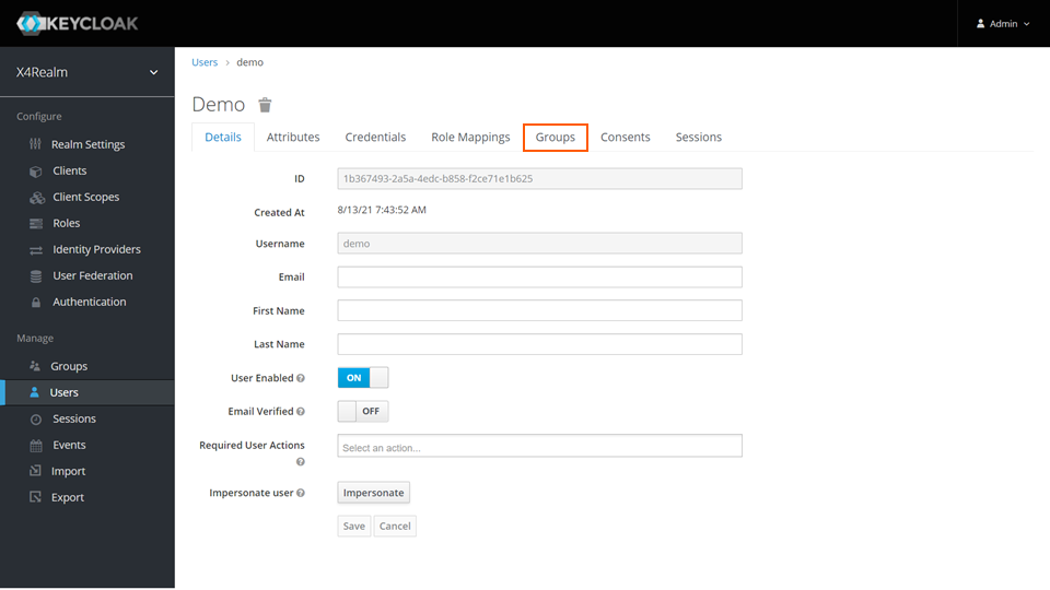 - Wechseln Sie in die Registerkarte Groups.