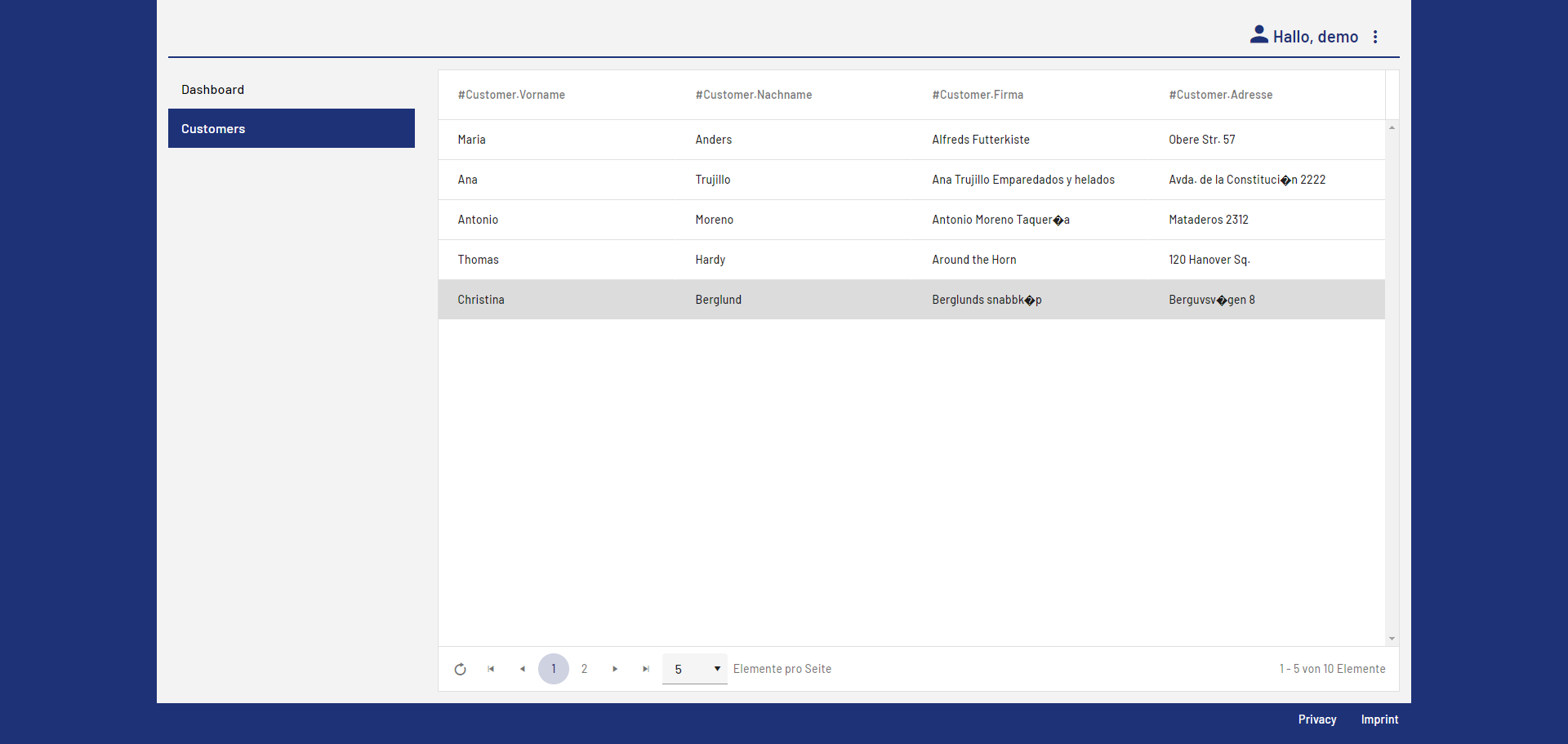 ✅ Sie haben nun erfolgreich eine Web App zum Anzeigen von Kundendaten erstellt.