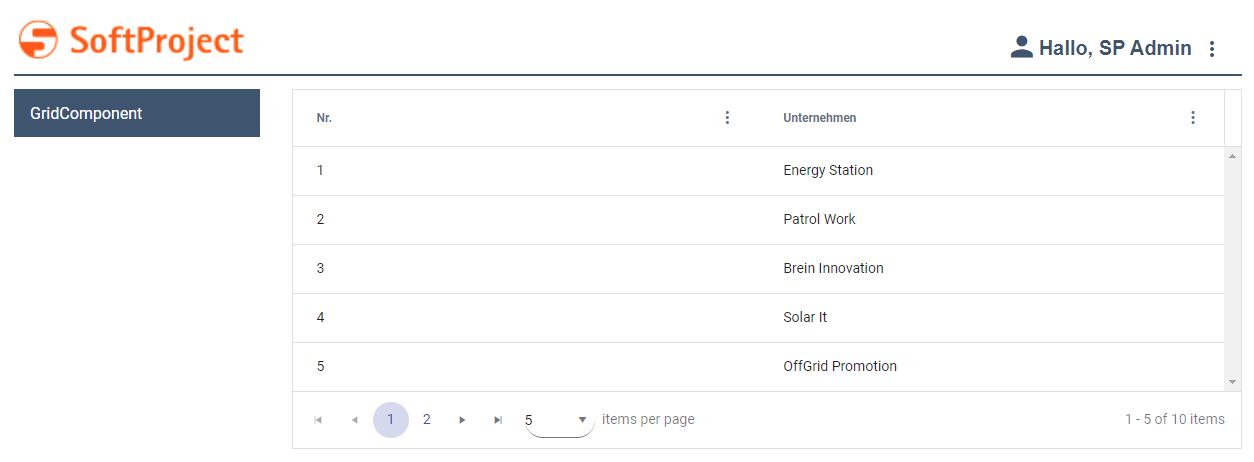 Beispiel für eine Grid Component