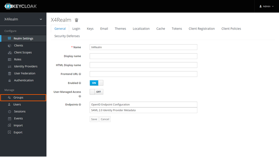 1. Öffnen Sie die Keycloak Administrationskonsole.
