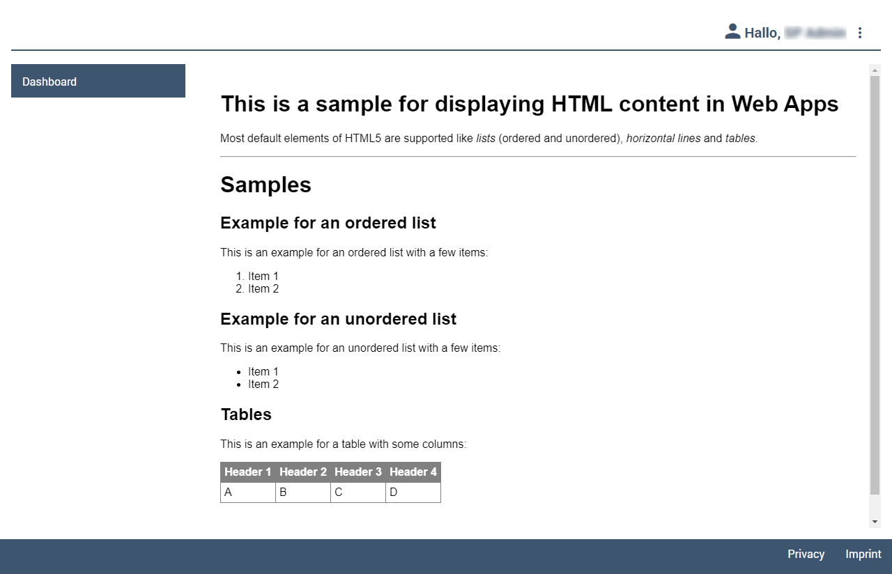 Das HTML-Dokument wird in der Web App folgendermaßen angezeigt: