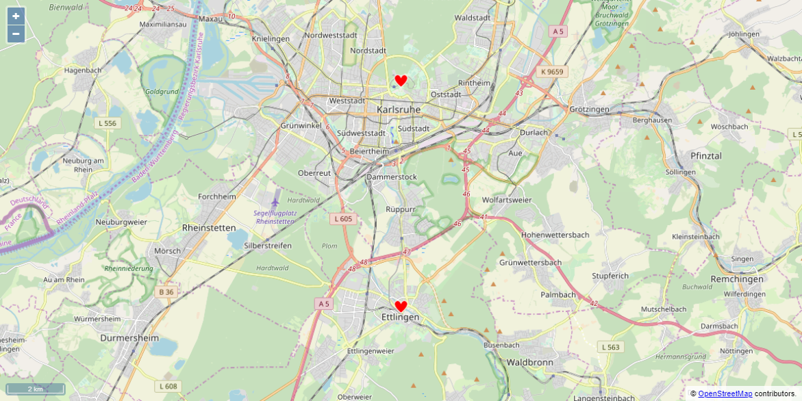 Mehrere Gruppen von Markern mit verschiedenen Symbolen (OpenStreetMap)