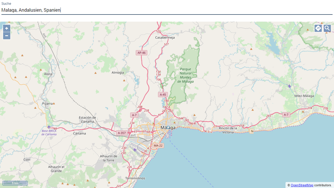 Um einem Web App-Benutzer die Suche nach Orten im Map-Control zu ermöglichen, wird das Element <Search/> innerhalb von <Map> verwendet.
