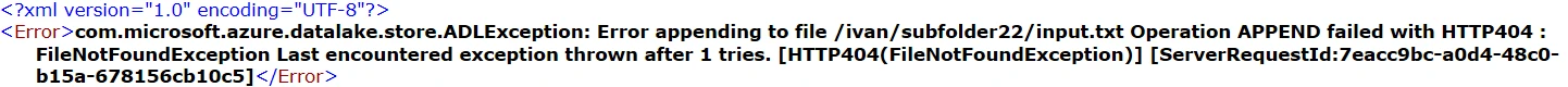 Wenn die Operation nicht erfolgreich war, also im Falle eines Fehlers (Status -1), gibt der Adapter ein XML-Dokument mit der Fehlerbeschreibung zurück, z. B.: