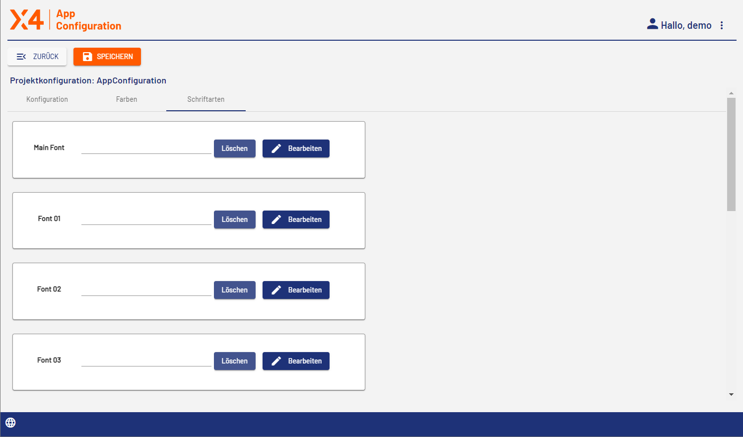 Unter Main Font legen Sie die Schriftart fest, die als Hauptschriftart der Web App verwendet wird.