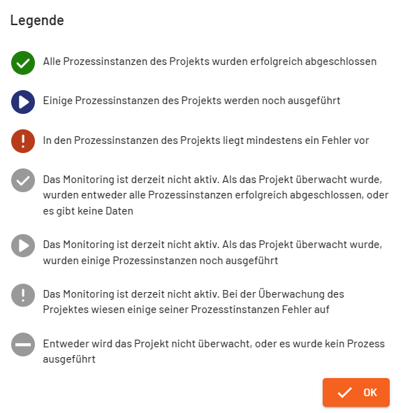 ) auswählen, wird eine Legende mit den verwendeten Statusangaben geöffnet.