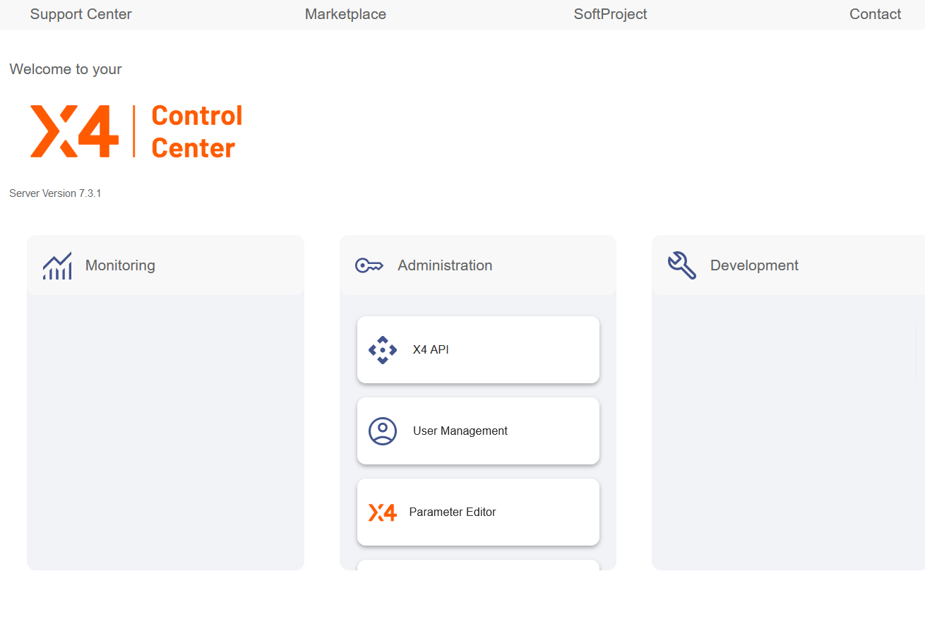Auf der Startseite des X4 Control Centers finden Sie jetzt einen direkten Link zum SoftProject