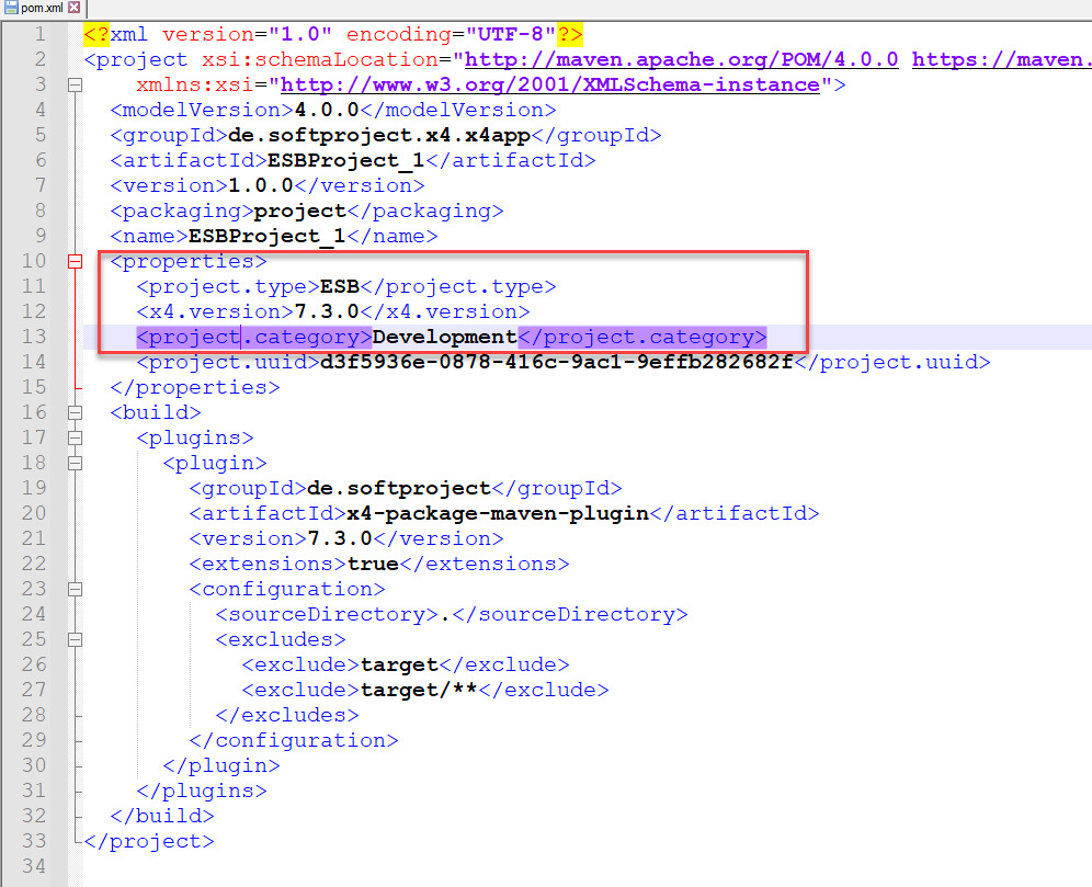 Sie können Web-Apps den verschiedenen Kategorien zuweisen und neue Kategorien in der pom.xml erstellen. Hierzu muss in der pom.xml unter dem <properties>-Element ein XMLElement