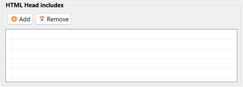 | In this pane, you can add the path to files in the project. The contents from the files are inserted as meta elements in the HTML head. Note: The file must be located in the Resources folder. |