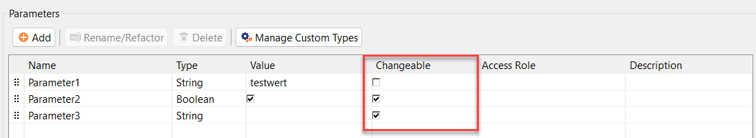 You can change the value for all project parameters for which you have activated the check box Changeable in the .param file in X4 Designer. Activating the check box means that the parameters have the type Variable.