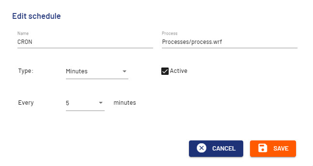 When selecting a process on the Cron tab list, the EDIT button becomes active.