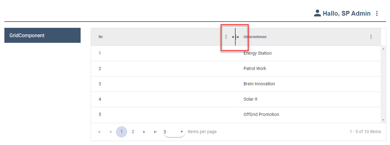 A grid component is ideal for displaying data in a tabular display. In the grid settings, the behavior of the grid component can be defined by setting individual elements.