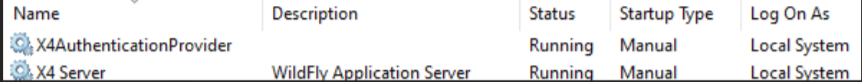 The status Running means that both the X4 Server and the authentication provider are running in the background and are ready for use. If the Status column does not contain an entry, select the respective service and select the option to start the service. The service is started and is ready for use after a short loading time.