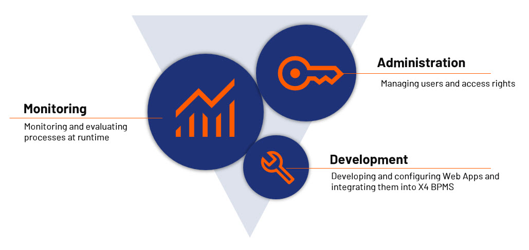 Developers and the different departments can control and improve X4 processes and apps at runtime. The X4 Control Center is operated conveniently via a browser.
