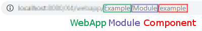 The path specifications for the project, the modules and the components (path attribute) can be used to navigate within the web application.