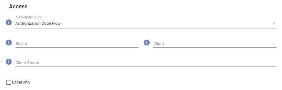 Authorization Code Flow: Note: To use Single-Sign-On functionality, select the authorization flow Authorization Code Flow. Additional information: Additional information can be found on the official Auth0® Inc. website Realm: Defines which Realm is used with Keycloak. Note: The specification of the realm is required if the authorization flow Authorization Code Flow or Resource Owner Password Flow is selected and a realm different from the standard is to be used. Client: Defines which Keycloak client is to be used. Note: The client name is required if the authorization flow Authorization Code Flow or Resource Owner Password Flow is defined and a client different from the standard is to be used. Client Secret: Defines the client log-in information for the specified client. Local Only: Enable/Disable the checkbox to define if a project should only be available locally or not. The check box is disabled by default. Note: The Web application can only be displayed in the local system in the browser. |