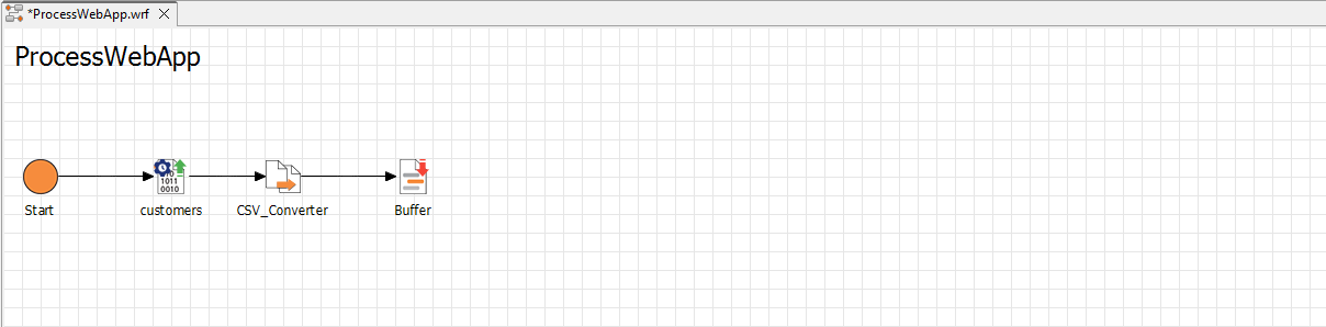 Buffers can be used in any process to cache temporary data for further processing. For the example process described here, you need the buffer to transform the XML structure generated from the CSV file so that it corresponds to the desired data structure in the Web App.