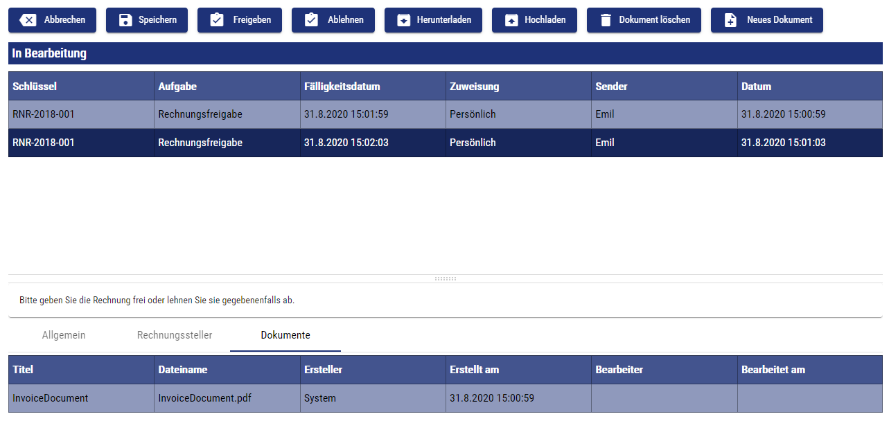Click on Freigeben. The task is now moved to the menu entry Erledigt.