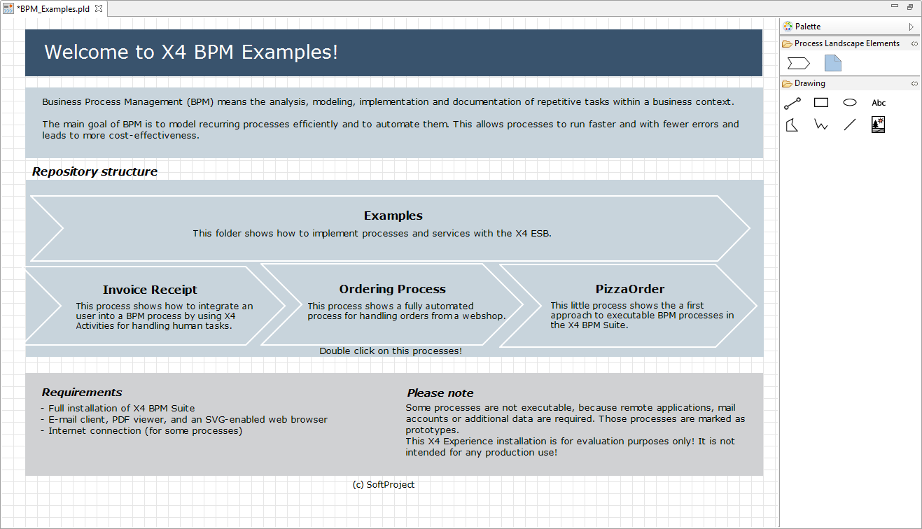 Process Landscapes enable to provide a clear presentation of process landscapes within the X4 Designer and to link processes and other documents.
