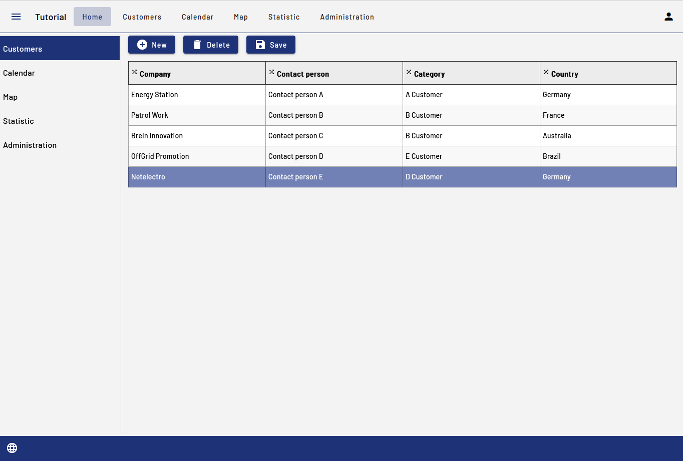 Multiple modules can be defined for a web application which are displayed in the header of the application. Modules containing submodules can be selected via the Hamburger menu icon in the upper left corner (